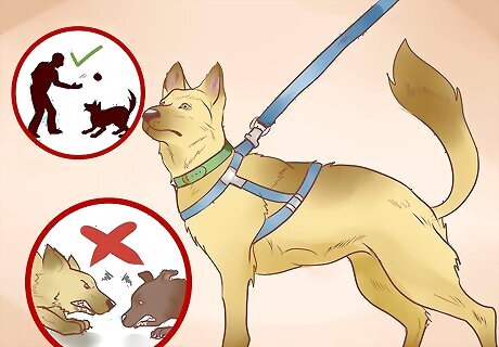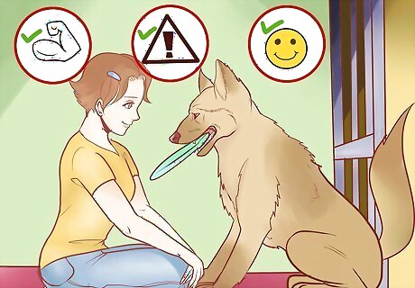 Play with them. A good guard dog will be energetic and alert. This means that they will willingly play games like fetch and tug-of-war with you. While you play with them, make sure that they are engaging with you and keeping their attention focused on you. When you are ready to end the game, they should listen to your commands to quit. Dogs that try to protect or steal toys from you may not make ideal guard dogs. Not only are they not responding to you but they may be too aggressive to be effective.