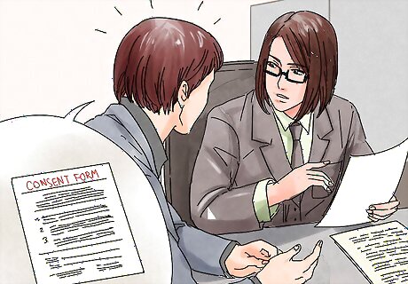 Have your spouse sign the consent form. For the consent form to be valid, it must be signed by your spouse, typically in the presence of a notary public. If your spouse refuses to sign, you may want to speak to someone your spouse trusts and see if they can convince your spouse to sign. You may be able to convince a reluctant spouse by reminding them that they can revoke consent at any time, even orally. In this way, medical consent forms are different from any other written agreement, which can only be revoked with another written agreement. However, keep in mind that if your spouse decides to revoke the consent during treatment, that will be the end of any information you get from their treatment providers.