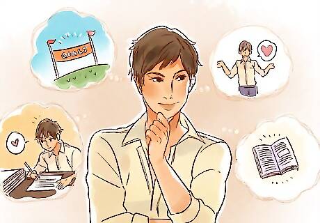 Find people who are motivated. Surrounding yourself with people who are negative and unmotivated can cause you to underachieve and be apathetic. If you surround yourself with people who are motivated and have goals, this can encourage you to achieve your own goals and succeed. When you are choosing people to hang around, go for the ones who are focused on their goals. If you see others working hard towards their goals, it can be a positive influence for you. For example, if your friends are studying hard and paying attention in class, this can influence you to stay focused on school. If you see your peers training hard for the season, you may feel inspired to train and do better, too.