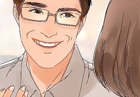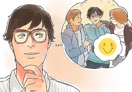 Smile and speak to others. If you are looking for positive peers, be proactive about it. Smile at someone you think is a positive person. Speak to them or try to start a conversation. If they are as positive as you think, they will probably welcome the interaction and respond to you. For example, smile at the person you always see in the library or speak to the person who is always in your gym class.