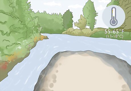 Fish with poppers when the water temperature is between 55–65 °F (13–18 °C). Topwater lures, like poppers, require the fish to swim up towards the surface of the water, which requires a lot of effort and energy. Wait until the weather and fishing conditions are ideal to use poppers. Fish are much more likely to bite during warm summer months when food is abundant and the water is warmer. Check your local weather conditions and fishing report before you head out to go fishing to make sure conditions are right for fishing with poppers.