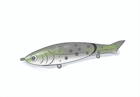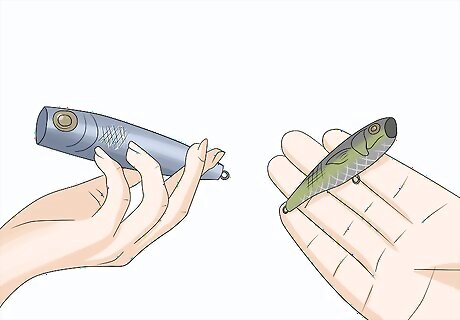 Choose a popper that resembles a dying baitfish. The best popper for you to use will be one that looks like a baitfish, or a fish that resembles the food that the fish you want to catch eats. Whenever you’re rigging your popper lure, pick one that most closely resembles the food that is eaten by the fish you hope to catch. For example, freshwater bass love to eat small minnows, so use a popper that looks like a minnow.Tip: Spend some time researching the type of food that your target fish likes to eat. Look online and check local fishing reports so you can choose a popper that resembles the best baitfish for the fish you want to catch.