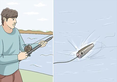 Cast the popper as close to the target area as possible. Look for shallow sloughs or still pockets of water near the bank and cast your popper as close as you can to where you think the fish are waiting. Aim for slower moving water to try to attract predatory fish like trout, bass, and pike. Avoid casting into fast-moving streams or the fish may not be able to hear the noise created by the popper.