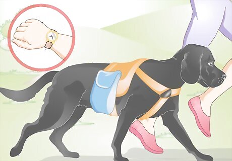 Give your dog time to adjust. Your dog will need to build its muscles to handle the extra weight in a pack. A 15-minute walk with a weighted pack is equivalent to a 30-minute walk without, for example. So, slowly increase the amount of weight or gear your dog will carry in the pack.
