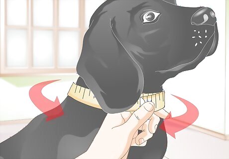Locate the widest part of your dog’s neck. Examine your dog and find where its neck joins its body; this will be the widest point. This is the measurement you will need when determining backpack sizing. This is different from when you measure for a collar, which sits higher on a dog’s neck.
