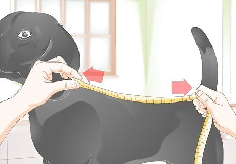 Determine your dog’s length. Measure your dog from the base of its neck to the base of its tail. You want the bulk of the weight your dog will carry to be near its shoulders, rather than lower on its back. Use the length measurement to ensure this is the case when comparing packs.
