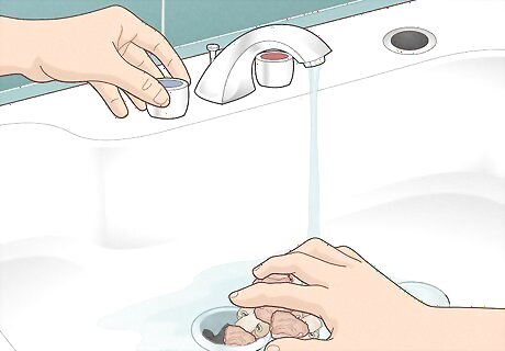 Run cold water into the sink and test the disposal unit. Remove the wrench, then turn on the water faucet. The water helps rinse away any debris still stuck on the blades. Plug in the unit and turn on the disposal. If you were able to rotate the wrench, the unit should work normally again. If the unit doesn’t work or you were unable to rotate it, unplug the unit, drain the water, and try a different method.