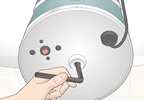 Insert an Allen wrench into the hole underneath the disposal. Unplug the unit, then climb underneath the sink and find the hole on the disposal’s underside. It will be hexagonal-shaped and in the center. Get the hexagonal wrench that came with the disposal unit and place its head in the hole. If you don’t have the wrench that came with the unit, purchase a ⁄4 in (6.4 mm) hex-head Allen wrench from a hardware store.