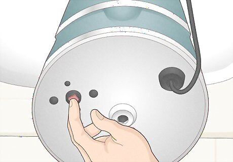Press the reset button on the disposal’s underside. The reset button or thermal overload button is on the bottom of the garbage disposal. Crawl under it and look for a red button. If it looks like it's sticking out, push it back into the unit. This may fix the jam right away. If the reset button isn't sticking out, move on to other methods that involve manually rotating the grinders to clear the blockage. Keep the unit unplugged.