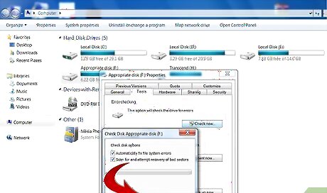 If you have a graphical interface, go to "My Computer", select the appropriate disk, click with the right mouse button and select Properties. Head for the "Tools" tab. Select "Check this drive for errors".