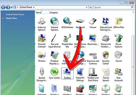 Click the "Start" button. Select the "Control Panel." If "System and Maintenance" is an available option, click it. Then click "System."
