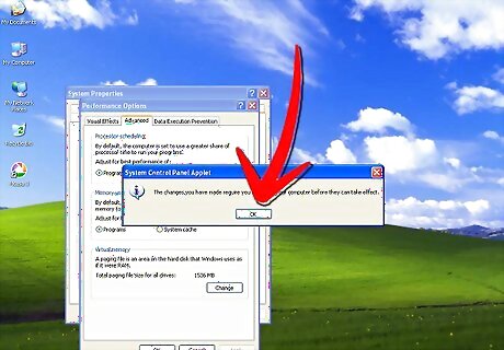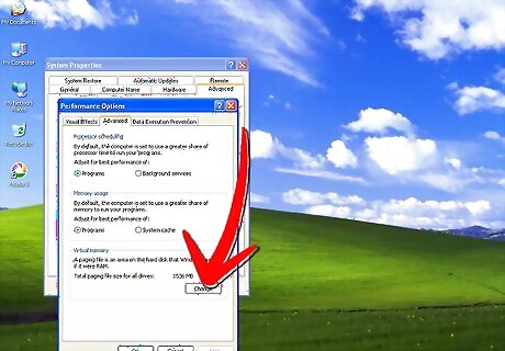 Select the "Advanced" tab, and find the "Performance" heading. Click "Settings." Choose the "Advanced" tab and then click "Change" under "Virtual Memory."