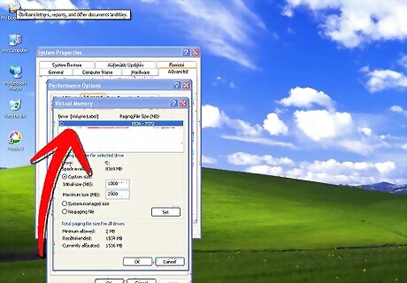 Find the list of drives under the heading "Drive [Volume Label]." Click on the drive that contains the operating system, as this is the drive of which you will adjust the virtual memory. Click "Custom size."
