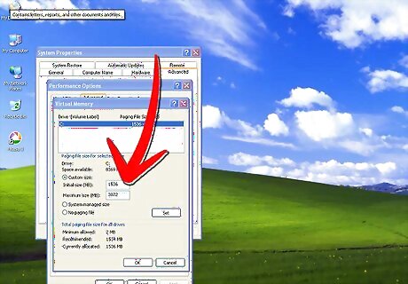 Type an increased size in the text boxes labeled "Initial size (MB)" and "Maximum size (MB)." (Same number for max and min) When you are finished, click "Set." Click "OK" to close the window.