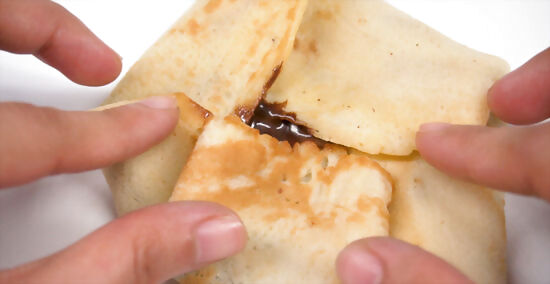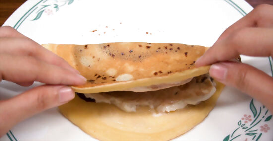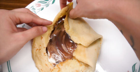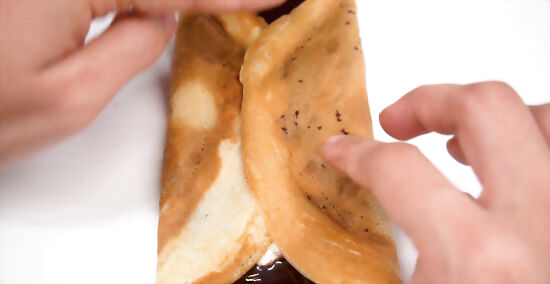 Fold the left and right sides towards the middle. To start your rolled crepe, simply fold both sides into the center to cover the filling. Let the folds overlap slightly to make sure the filling stays inside.