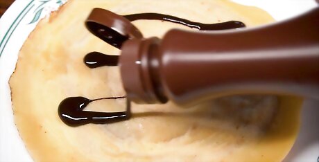 Dig into your crepe with a knife and fork. The easiest way to eat your hexagonal crepe is on a plate with utensils, since it might fall apart or get messy if you try to wrap it up or eat it with your hands. Serve up the crepe while it’s still warm, and enjoy! You can add some more toppings to your crepe as well! Try sprinkling sliced almonds on top, or adding a whipped cream for a sweet crepe. You can serve cooked vegetables alongside a savory crepe.