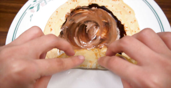 Spread filling all over the crepe. If you want to roll up your crepe, start by spreading your filling in a thin, even layer to the edges of the crepe. Use a knife or rubber spatula to smooth it out, and make sure that the filling reaches the very tip of the crepe.