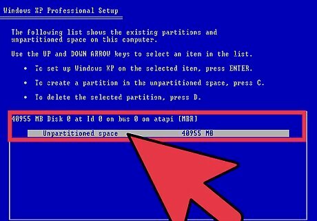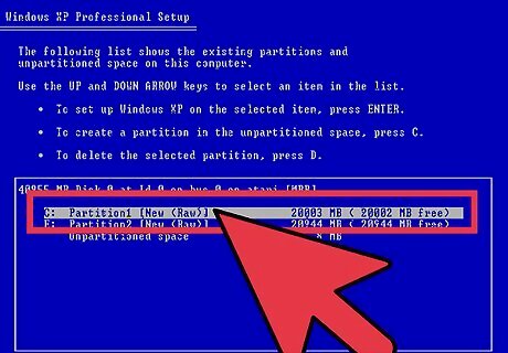 Select your desired partition for installation of Windows XP. Press the Enter key.