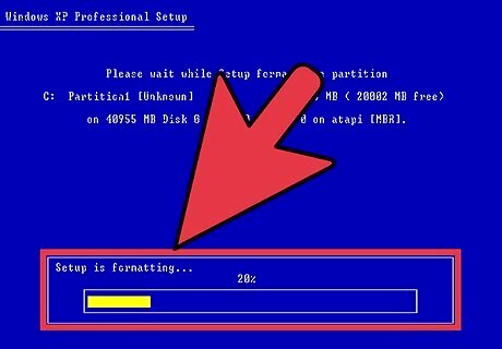 Run Setup. After formatting, Setup will start copying files on to the hard disk.