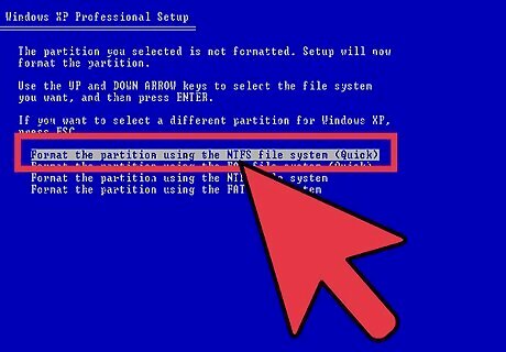 Choose to format the partition. Choose NTFS quick for best results. Choose NFTS (quick): A normal NFTS will take much longer, and FAT filesystems are obsolete.