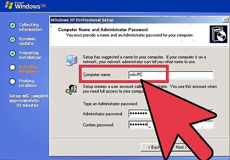Type a name for your computer. If you wish, you can also type a password to login - otherwise you can leave it empty.