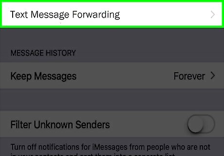 Tap Text Message Forwarding. It's the third option in the Messages menu.
