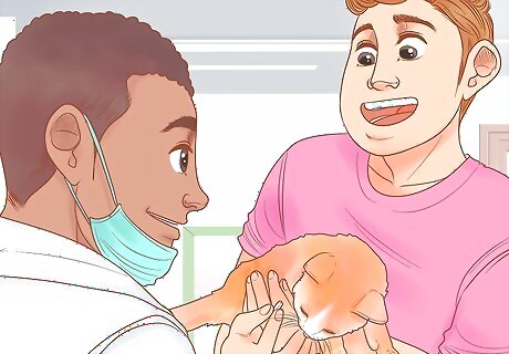 Take the kittens to veterinary appointments. When you sign on to foster kittens, you will need to agree to take them in for a variety of veterinary appointments. This typically includes signing them up for spaying or neutering and taking them in to have it done. There may be other veterinary appointments for the kittens, depending on their health and what veterinary procedures have been done on them before you took them in. In many cases you will need to get them a variety of vaccinations and have their general health assessed by a veterinarian.