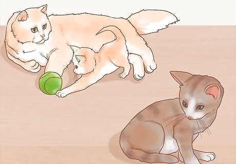 Give the kittens toys. You may want to get a couple of soft toys and some feather chasers to entertain the kittens. If the kittens are older, you may also consider getting a cat tree, as these can provide hours of fun and a nice place for the kitties to relax. Giving the kittens toys will entertain them and minimize the trouble they can get into if they are bored.