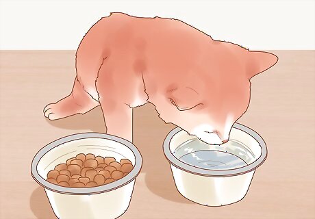 Supply food and water. Near the bed you should place food and water bowls, if the kittens are old enough to eat on their own. The best are trays, which are long and shallow containers that are good for a lot of kittens eating at once. Don't use bowls that are too deep, as the kittens will have a hard time accessing food and water. If the kittens are needing to be bottle fed, check in with the shelter to get bottles and milk formula, or order it at your local pet store or online.