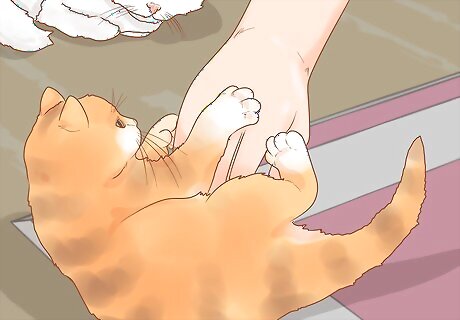 Spend time with the kittens every day. Make sure you hold the kittens frequently, petting them and picking them up. Play with the kittens a lot. The more time you spend with them, the better socialized they will be to people throughout their lives. Spending time with the kittens is the best part of fostering, so enjoy it. Touch their paws a lot, as they will need to be comfortable with it in the future to have their nails clipped.