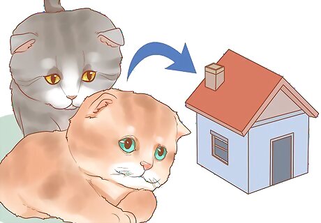 Allow the kittens to leave their room for periods of time. If you want to, start to let the kittens leave the room for short periods of time once they are seven or eight weeks old and have been at your house for at least a few weeks. However, they should always be accompanied by you and never allowed to run around loose, especially if you have other animals. Don't force the kittens to interact with other cats or dogs as this can result in injury and fear. Always supervise the kittens carefully, and keep all doors closed.