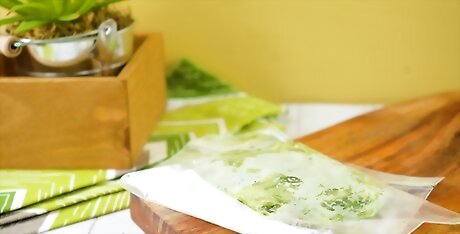 Flatten the bags to remove the air and close them. Once you’ve transferred all of your zucchini, close the bags 3/4 of the way. Lay the bags on their sides and press down gently on them to compress your zucchini and remove most of the excess air. Close each of your food storage bags once you’ve removed all of the air and flattened your bags a little. If you trap a lot of air in the bags, your zucchini is more likely to go bad. Flatter bags are easier to stack and don’t take up as much room as round bags.