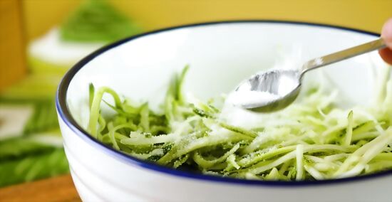 Let the zucchini rest for 10-20 minutes to remove the moisture. Leave the bowl out at room temperature. Put a paper towel over the bowl to protect the zucchini. Wait at least 10 minutes to give the zucchini time to release its juices.