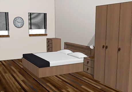 Create a floor plan to figure out how much room you have to work with. If you don’t get a floor plan when you move in, sketch one yourself. Note where the important features are, such as the windows, walls, and vents. If you need to, measure the width and height of these features so you know how much room you have left for furnishings. Use the floor plan as a guide when you’re designing the room and choosing furniture for it. For example, the fixtures determine where you can put certain objects. You wouldn’t put a big bookcase in front of a window or in a room with a low ceiling. Keep in mind that furniture often looks bigger when you get it home than it does at the store. Have your floor plan handy to use as a comparison before making a purchase.