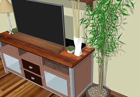 Decorate around your favorite piece of furniture. Start with the furnishing you like best and make it a focal point of your design. Take cues from that piece and choose decorations that compliment it. You might wish to leave your best or most important furnishing out in the open so guests see it as soon as they enter the room. For example, if you have a stylish sofa, make it stand out. You might leave a black leather sofa against a white wall close to a couple of brown chairs. Add color with plants or art so you don’t take attention away from the sofa.