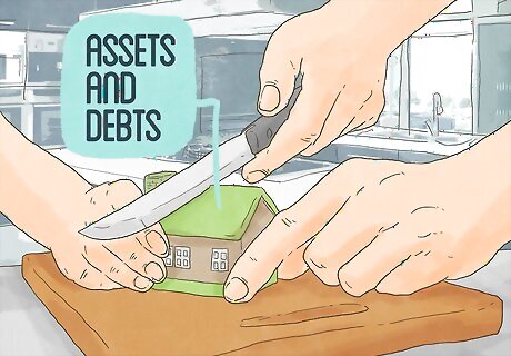 Divide assets and debts. You also need to tell the judge how you will divide joint assets and debts. For example, if you bought a house together, then someone needs to take ownership of the house and someone needs to take ownership of the mortgage. Some courts have forms you can use on which you list your joint assets and who will own them. Alternately, you might write up a list of assets and debts and assign ownership to each. Go down through all real property (real estate) and personal property that you own. Try to come to a division that works for the both of you. You also need to divide joint debts. For example, if both of your names are on a car loan, then one of you will take responsibility for the loan. For more information on how to write up a division of debts and assets, see Write a Divorce Settlement Agreement.