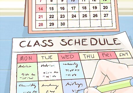 Schedule your classes. It might be helpful to create a map of the courses you need to take over the course of your program. For each semester in your nursing course, you can mark which required courses you will take so that you can complete your degree on time. Refer to your school’s course catalogue to see which courses are available during certain semesters. Many programs have a set course map because certain classes have to be taken in a certain order, and certain ones are only offered during the spring, summer, or fall — not every semester. Some programs might offer the opportunity to take extra courses in the summer, online, or at night. If you want to complete your degree early, talk to an advisor about these options.