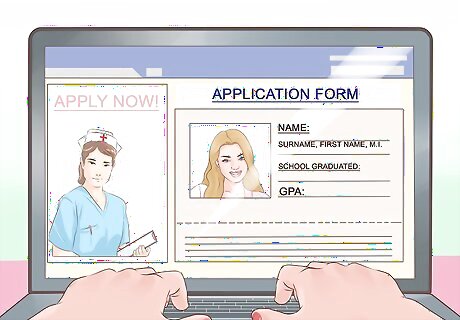 Fill out the application. Most applications are completed online. You may find the application for nursing programs on their website. You can also visit the campus to pick up a paper application if they are available. You may have to attach certain documents. These might include: Transcripts from previous education References or recommendations from teachers Personal statement CV or resume