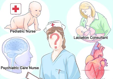 Identify what type of nursing you want to do. If you want to become a specialized nurse, you may have to complete additional requirements. While you do not have to choose your specialty immediately, you can start thinking about what type of nursing you’re interested in. Psychiatric care nurse: Requires a diploma, associate degree, or bachelor’s degree Lactation Consultant: Requires a diploma, associate degree, or bachelor’s degree Nurse practitioner: Requires a bachelor's and master's degree in nursing Pediatric nurse: Requires a diploma, associate degree, or bachelor’s degree Neonatal nurse: Requires a bachelor’s degree in BSN or BScN. Cardiac Care nurse: Requires an associate or bachelor’s degree