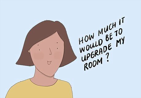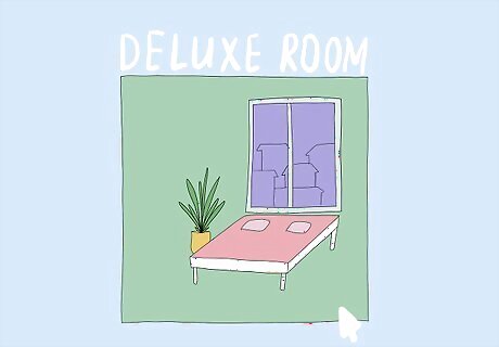 Choose a deluxe room rather than a standard one. Look for mid-level rooms at the hotel you chose rather than the cheapest room you can find. Hotel managers and employees will see that you care about your stay to pay for a nicer room, so they may be more willing to upgrade you when you arrive. Avoid making any room requests in advance, such as wanting a fridge or high-speed internet, since they could assign you a room before your stay and make it more difficult to switch later on.
