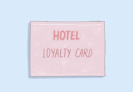 Join the hotel’s loyalty program if they offer one. Many larger chains of hotels have loyalty cards that you can sign up for to earn points toward rewards, such as amenities and room upgrades. When you book your hotel, look for an online sign-up for a rewards programs and fill out the information completely. The more you stay at that hotel chain, the more likely you are to get a room upgrade at little or no cost.Tip: Some hotel chains also offer credit cards that give you rewards during your stay the more you use them. Check with the hotel chain you want to stay with to see if they have any credit card offers.