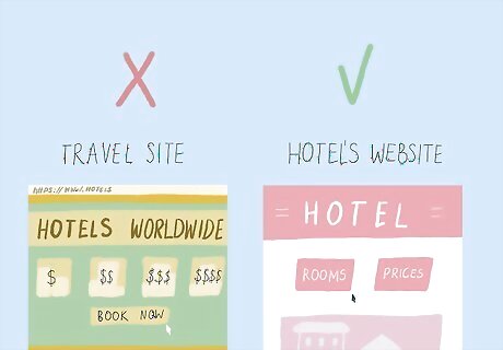 Book directly through the hotel’s website instead of a third-party travel site. While it may be slightly more expensive, going directly to the hotel’s website can show you’re loyal to a brand and could boost your chances at receiving a room upgrade. Visit the hotel’s website and choose when you’re staying so you can book your reservation with them. Try using an incognito web browser when you book your hotel since prices may be cheaper than if you use your regular browser.