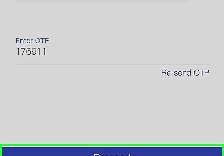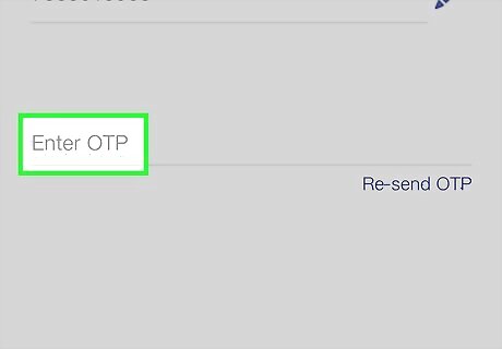 Type the OTP into the "Enter OTP" field. It may take a few moments for the code to arrive. If five minutes have passed and you still haven't received the code via text message, tap Re-Send OTP below the blank to try again.