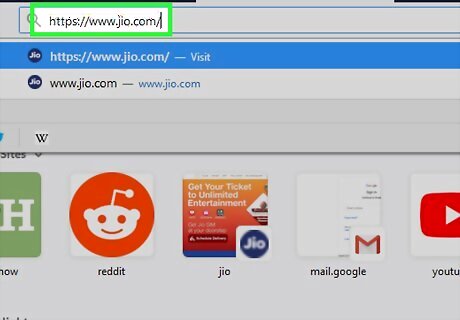Go to www.jio.com in a web browser. If you're using a web browser, you can order your Jio SIM on this website. If you ordered a phone directly from Jio's website (and SIM home delivery is available in your location), you'll receive an email containing a link you can use to purchase a SIM. This email message may not arrive until your new Jio phone is delivered.
