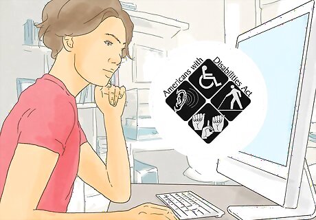 Study your country's disabilities act. Most countries have a disabilities act that makes it so an employer has to make reasonable accommodations for a person who is deaf or hard of hearing. Reasonable accommodations are accommodations that won’t put hardships on the employer, and may include providing accessible worksites, modifying equipment and schedules, restructuring job requirements, or providing assistive technology or interpreters. Knowing your rights can help you be better prepared when you go on the job market. For example, the Americans with Disabilities Act (ADA) is one of a few federal laws that cover the rights of deaf and hard of hearing people in the workplace.