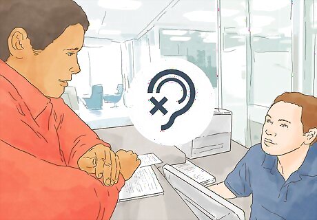 Have your job site needs assessed. You can contact a vocational rehabilitation office and find out more about their services for job site assessment. This is especially helpful when you are hard of hearing or late deafened. You can get a communication specialist to come to your workplace and assess your technology needs and perform task analysis. For example, they may determine if you need assistive listening devices or other technology to aid you in your job. They can also provide training for you and your workplace. A communication specialist may be able to provide training for you and your colleagues in communication strategies, support services, and preparation.