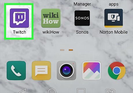 Open the Twitch app on your Android. The Twitch icon looks like a white speech balloon and a " ` ` " icon on a purple background. You can find it on your Apps menu. If you're not automatically signed in, tap the Log In button at the bottom, and log in to your streamer account. If you don't have the Twitch app installed, you can install it from the Play Store.