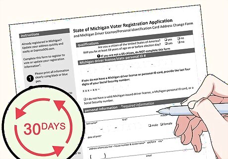 Verify that you are eligible to vote. To be eligible to vote, you must be a US citizen, a resident of Michigan, and live in the town where you're registering. You also must be at least 18 years old, or be turning 18 by Election Day. You don't have to live in a town for any length of time to be considered a resident for the purposes of registering to vote. You can register to vote the first day you move there. If you move to a different address within the same city or township, you don't have to re-register to vote, you can simply update your address. However, if you move to a new city or township, you will have to re-register.Tip: The address you use to register to vote must be the same address that is on your driver's license. If you've moved, update your driver's license before you re-register to vote.