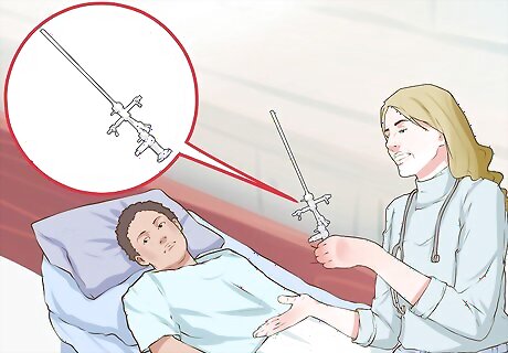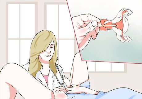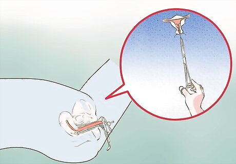 Get a pre-procedure examination. When you get to the doctor's office, she will check for the location of your IUD device. She will locate it by inserting her fingers into your vaginal canal and placing her other hand on your abdomen or by using a speculum. She will then feel around to see if the IUD is still at the top of your cervix. She may also use a hysteroscope, which is thin tube that has a light and camera lens on the end of it. This pre-examination also checks for excessive tenderness or physiological changes that might prevent your IUD from being removed. In rare cases, it may be necessary to have an ultrasound or x-ray if your doctor cannot easily find the strings of your IUD. These are used to make sure that the IUD has not shifted into your abdomen or your pelvis.