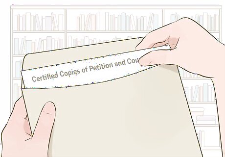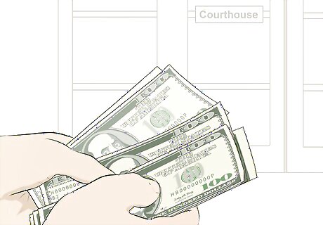 Pay all associated court fees. Along with the fees needed to produce copies of your petition and court order, you’ll be charged a $46 filing fee for processing your case paperwork. You can pay your fees by mail or in person at the courthouse using cash, credit card, money order, cashier’s or company check. Personal checks are not accepted. You must be able to show a valid government-issued ID if you want to pay using a credit card. A small convenience fee may be added to credit card transactions on top of the amount owed to the court. Be aware that court payments are not processed on county holidays.